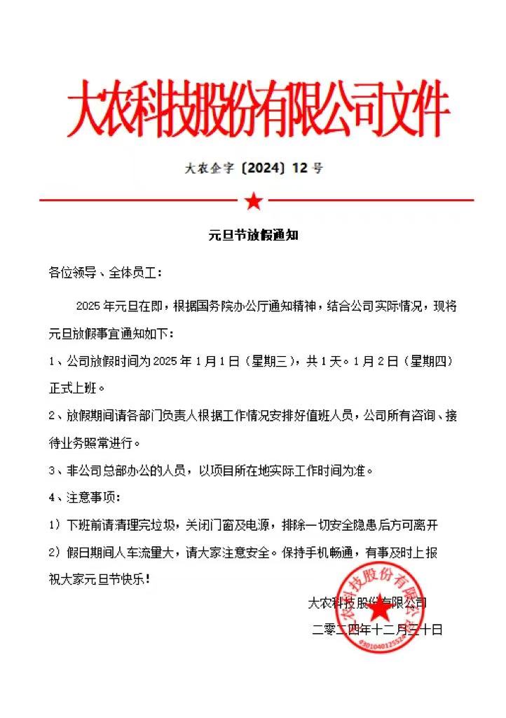 公司:大农科技股份有限公司